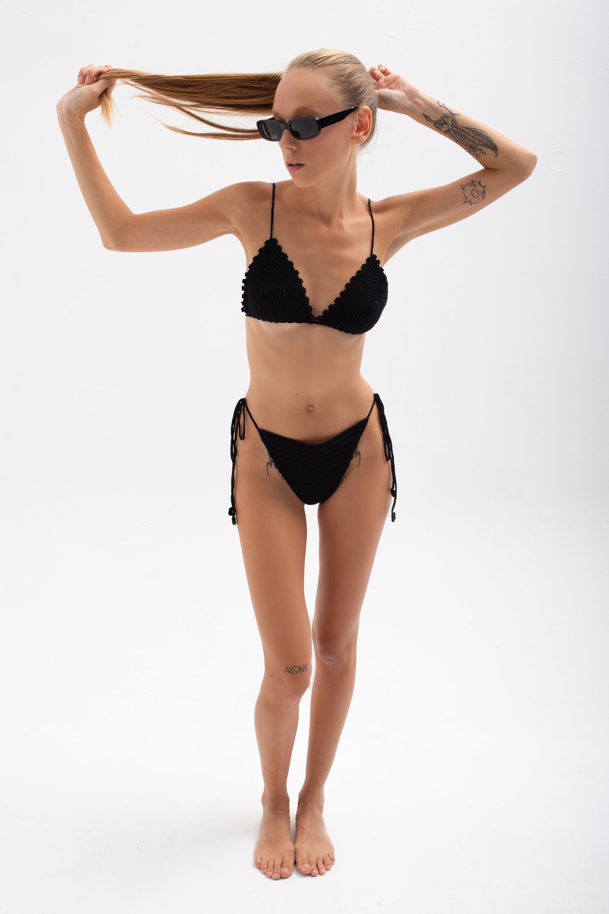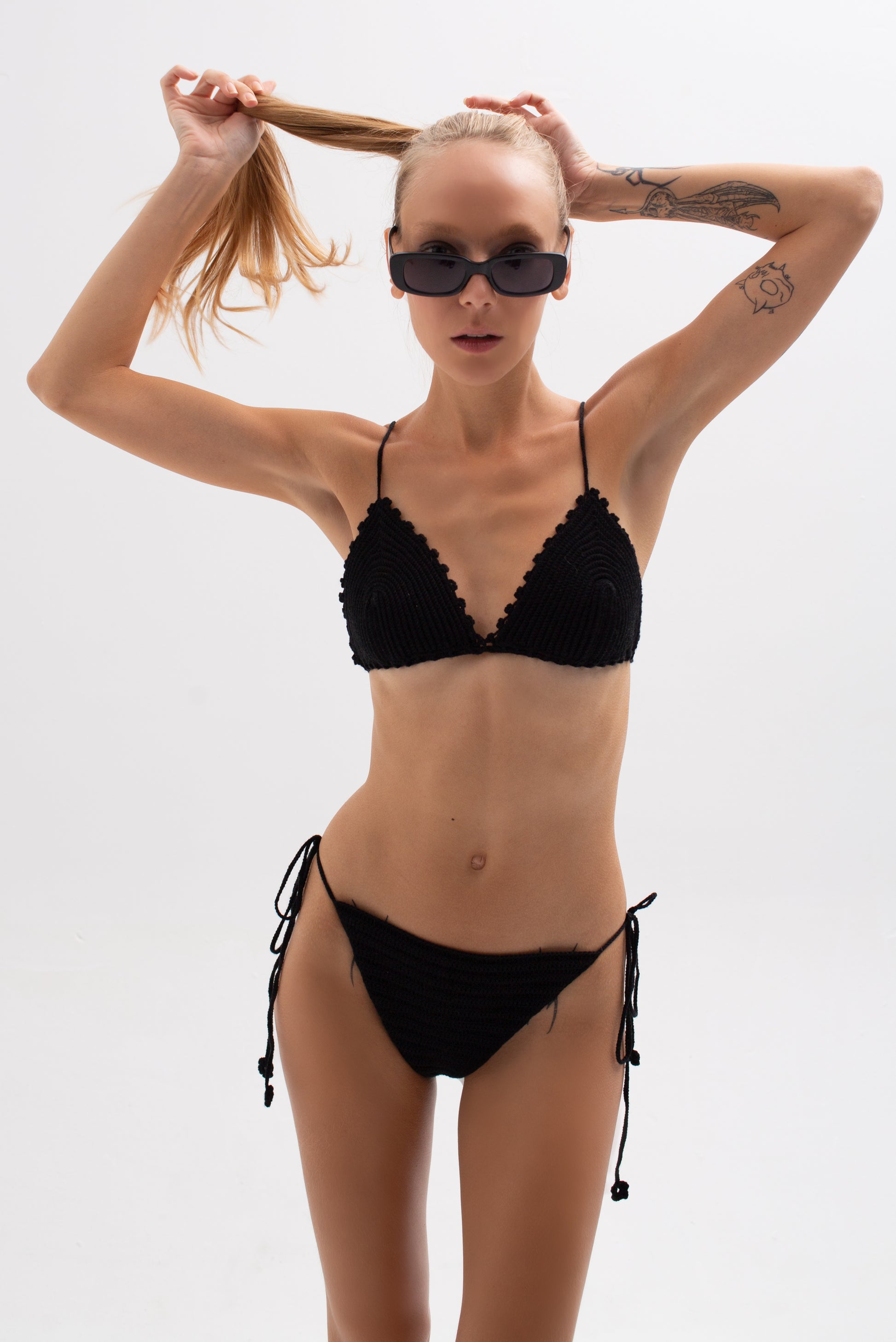 Essential Handknitted Bikini, a timeless and classic two-piece set that is perfect for any occasion. The intricate handknitted details create a stunning and unique design, making it a must-have addition to every summer wardrobe. The organic materials used in its production ensure that the Essential Handknitted Bikini is not only beautiful but also eco-friendly.