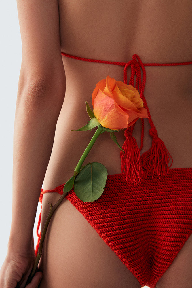 Essential Handknitted Bikini, a timeless and classic two-piece set that is perfect for any occasion. The intricate handknitted details create a stunning and unique design, making it a must-have addition to every summer wardrobe. The organic materials used in its production ensure that the Essential Handknitted Bikini is not only beautiful but also eco-friendly.