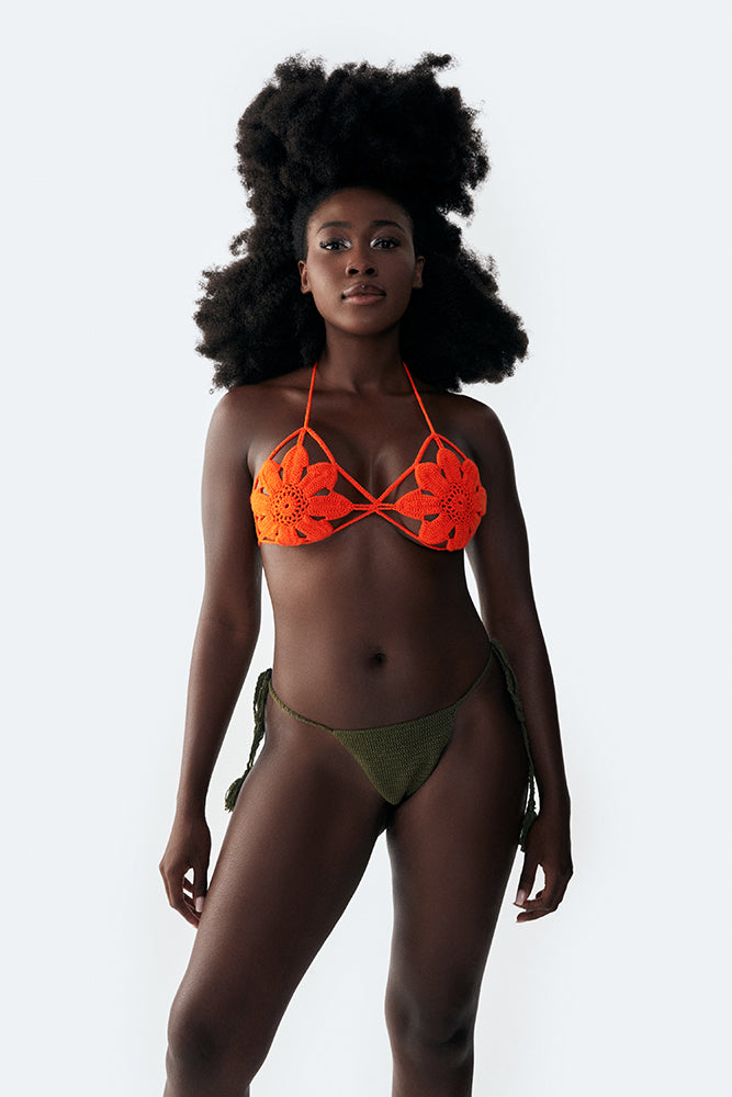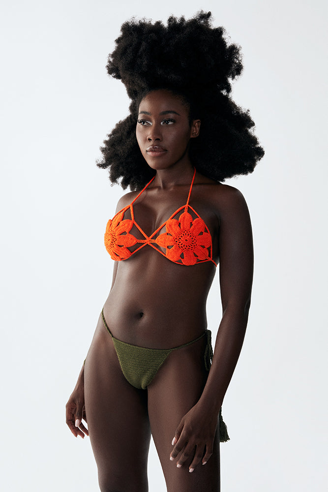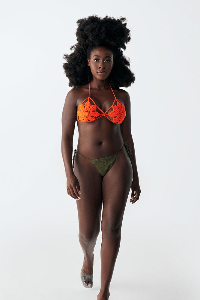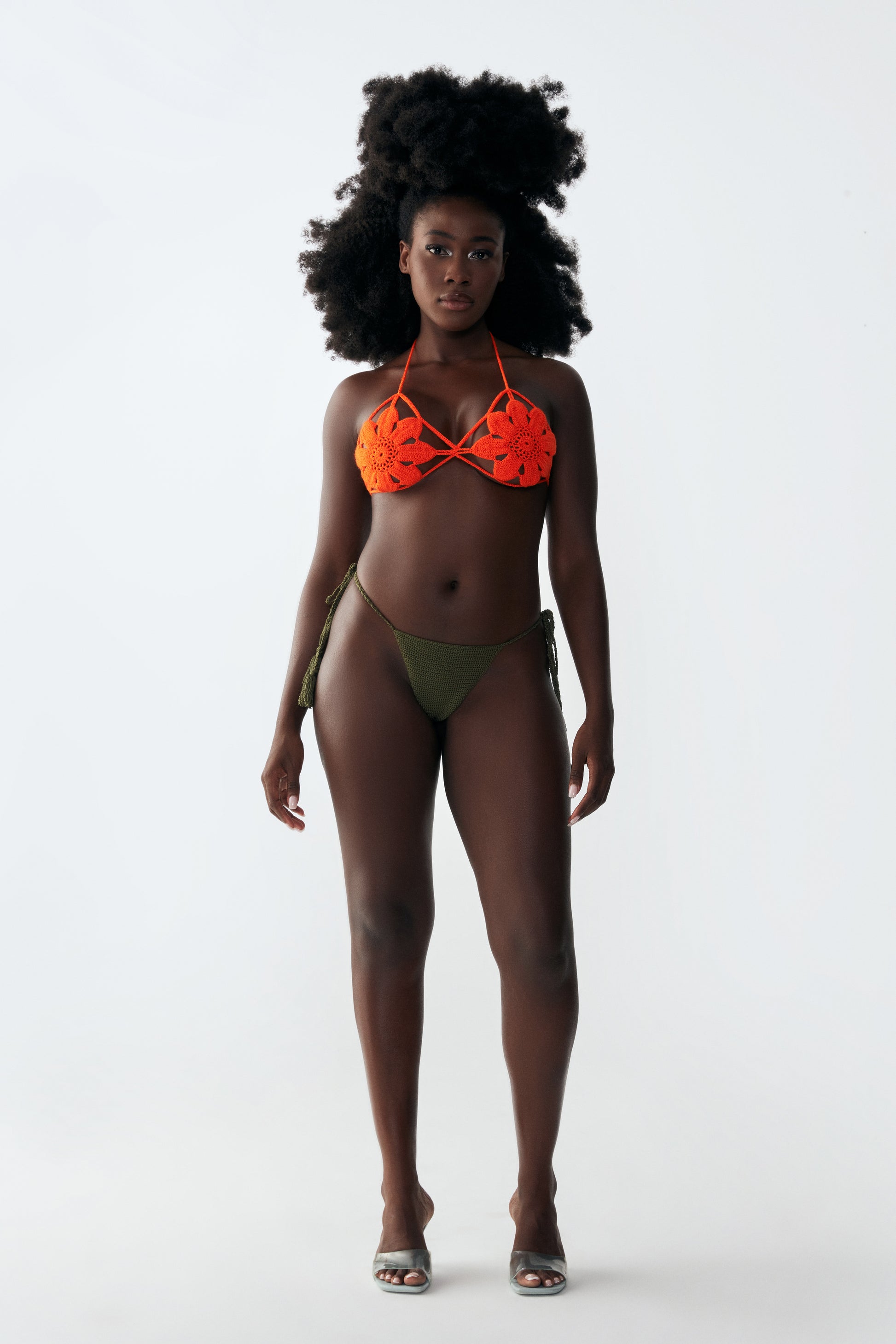 June bikini set from Spagetti, an artisanal masterpiece crafted with impeccable handcraftsmanship. This two-piece set features an elegant flower detail at the top that covers the breast in the most stylish and sophisticated way possible. The minimalist design adds to its charm, making it a perfect choice for a beach day or poolside lounging.Indulge in the luxurious comfort and unique design of this meticulously crafted bikini set, tailored exclusively for you in approximately 72 hours of intricate handiwork.