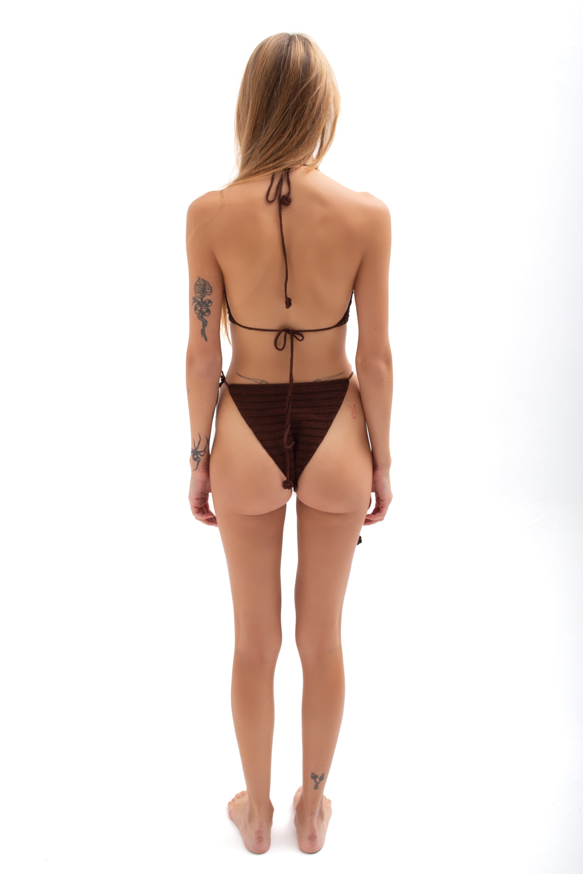 Milan bikini set from Spagetti, crafted by skilled artisans with impeccable attention to detail. The elegant web details on the top provide a unique touch to this versatile beachwear, covering the breasts in the most stylish and sophisticated way. The minimalist design of the set adds to its elegance, making it perfect for lounging in the sun or strolling on the beach.Indulge in the luxurious comfort and unique design of this meticulously crafted bikini set, tailored exclusively for you in approximately 72 hours of intricate handiwork.