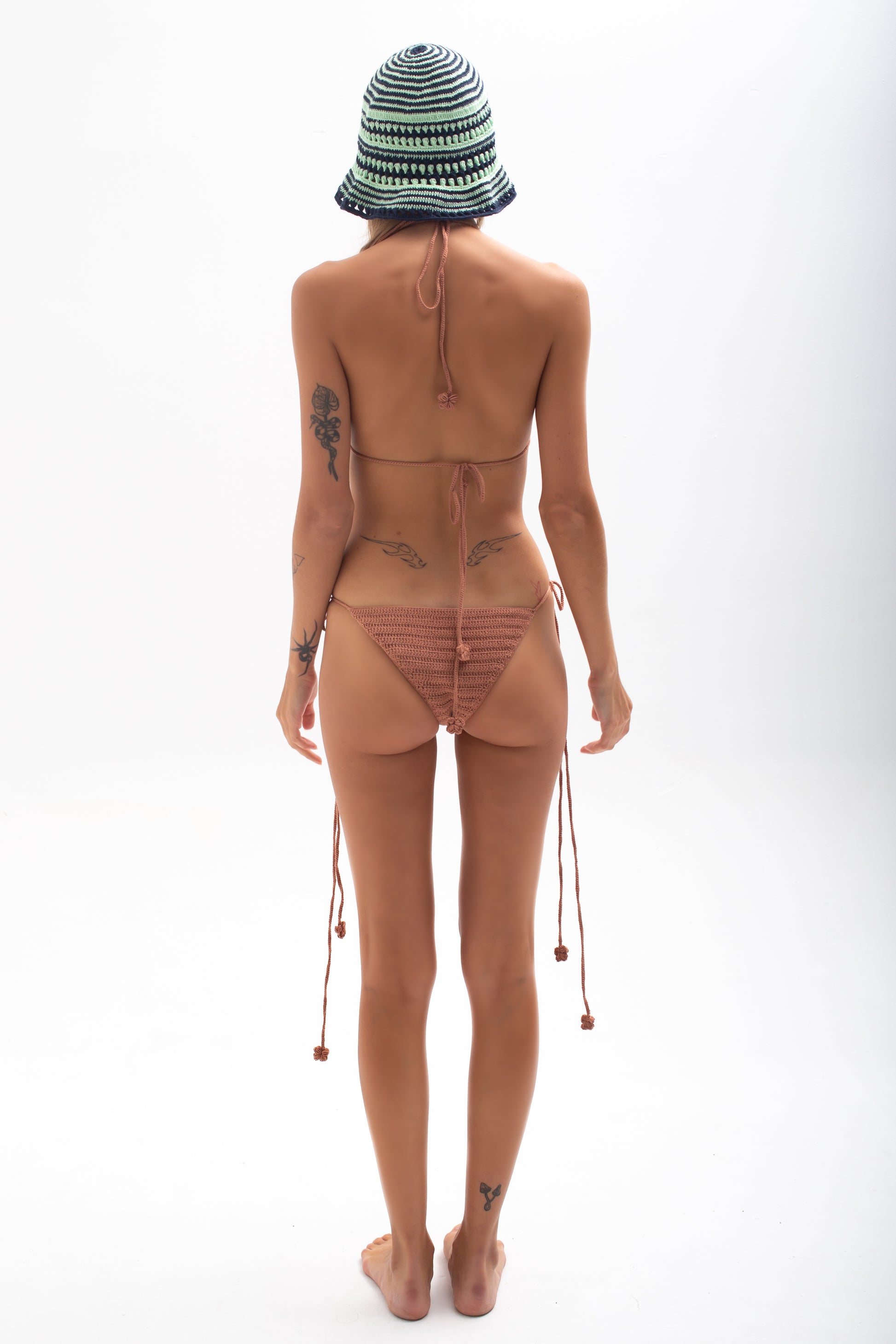 Milan bikini set from Spagetti, crafted by skilled artisans with impeccable attention to detail. The elegant web details on the top provide a unique touch to this versatile beachwear, covering the breasts in the most stylish and sophisticated way. The minimalist design of the set adds to its elegance, making it perfect for lounging in the sun or strolling on the beach. Indulge in the luxurious comfort and unique design of this meticulously crafted bikini set, tailored exclusively for you in approximately 72 hours of intricate handiwork.