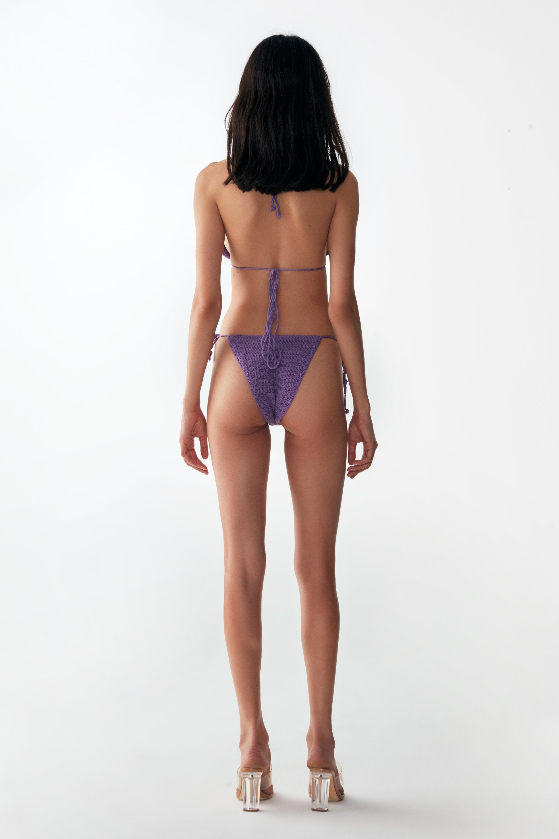 Venus two-piece bikini set by Spagetti, a perfect combination of elegant style and sustainable fashion. Hand-knitted with intricate craftsmanship, this beachwear set features unique details that are sure to turn heads. The minimalist design of this bikini set makes it perfect for sunbathing, while the top piece boasts elegant flower details that cover the breasts in the most elegant and bold way ever.