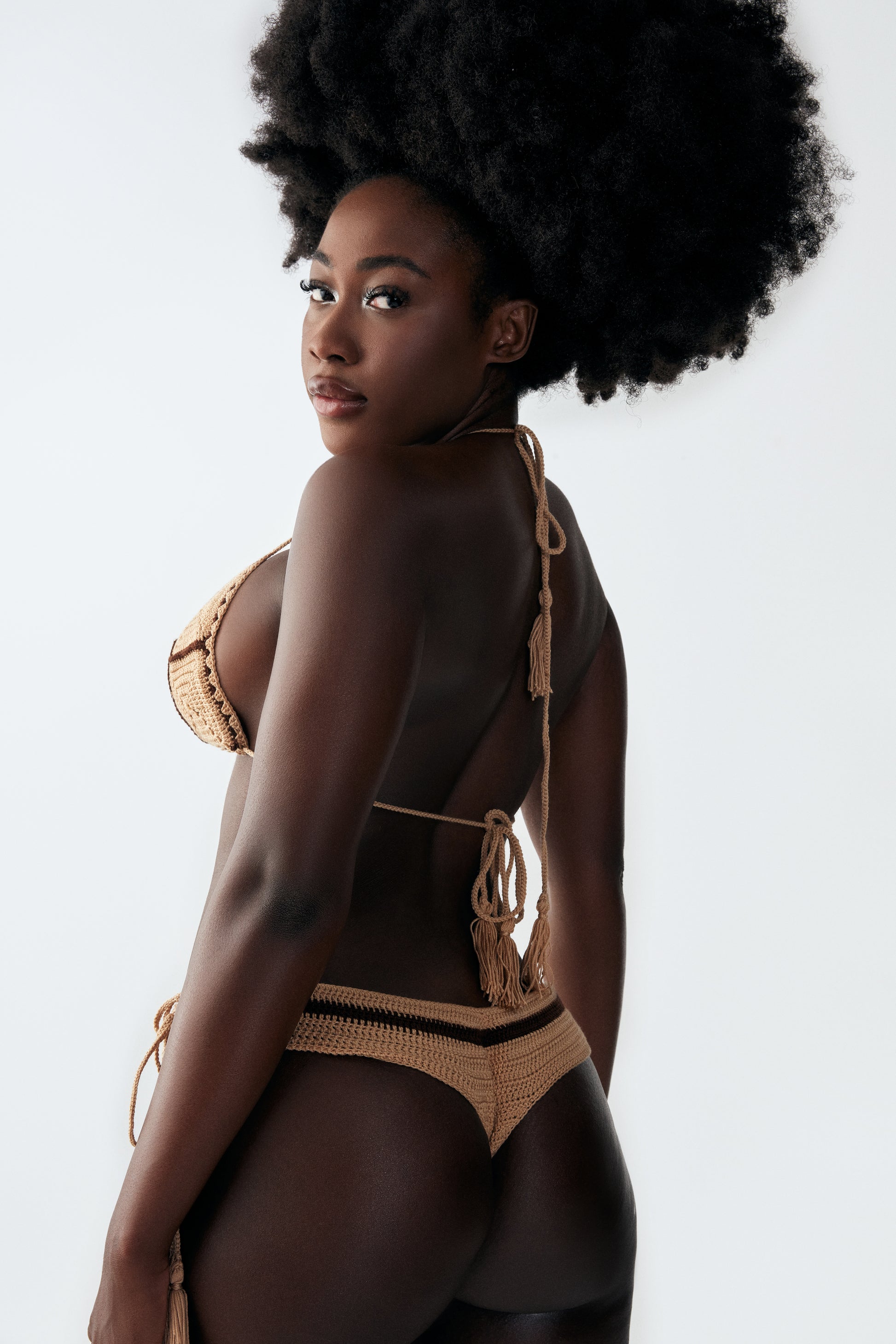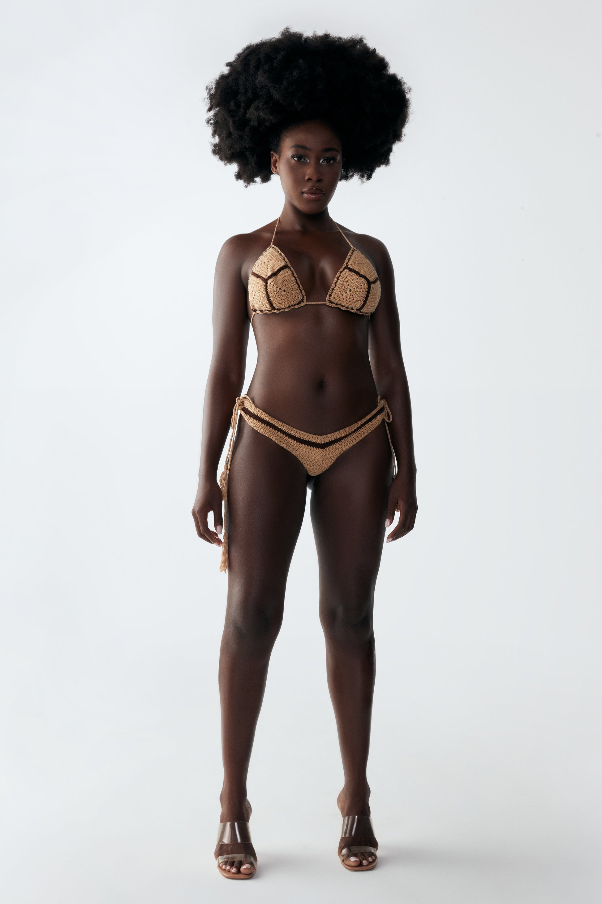 X handknitted two-piece bikini set is versatile and perfect for any beach occasion. Whether you are lounging on the sand or taking a dip in the ocean, this set will keep you looking chic and stylish. The handcrafted details of this set are a testament to the skilled artisans who make them.